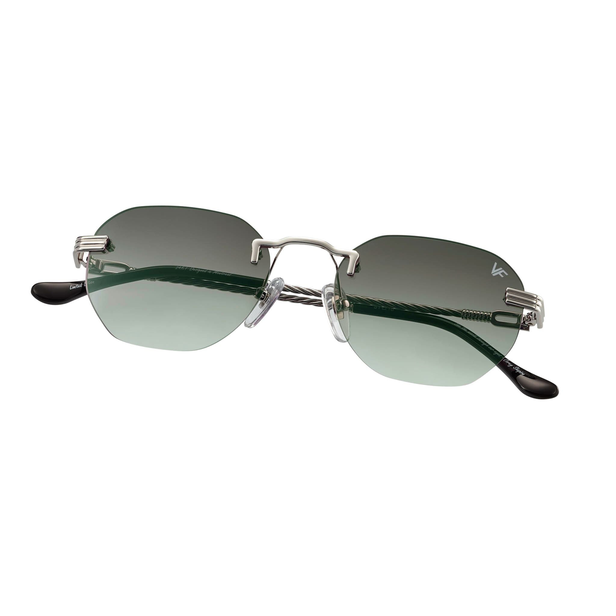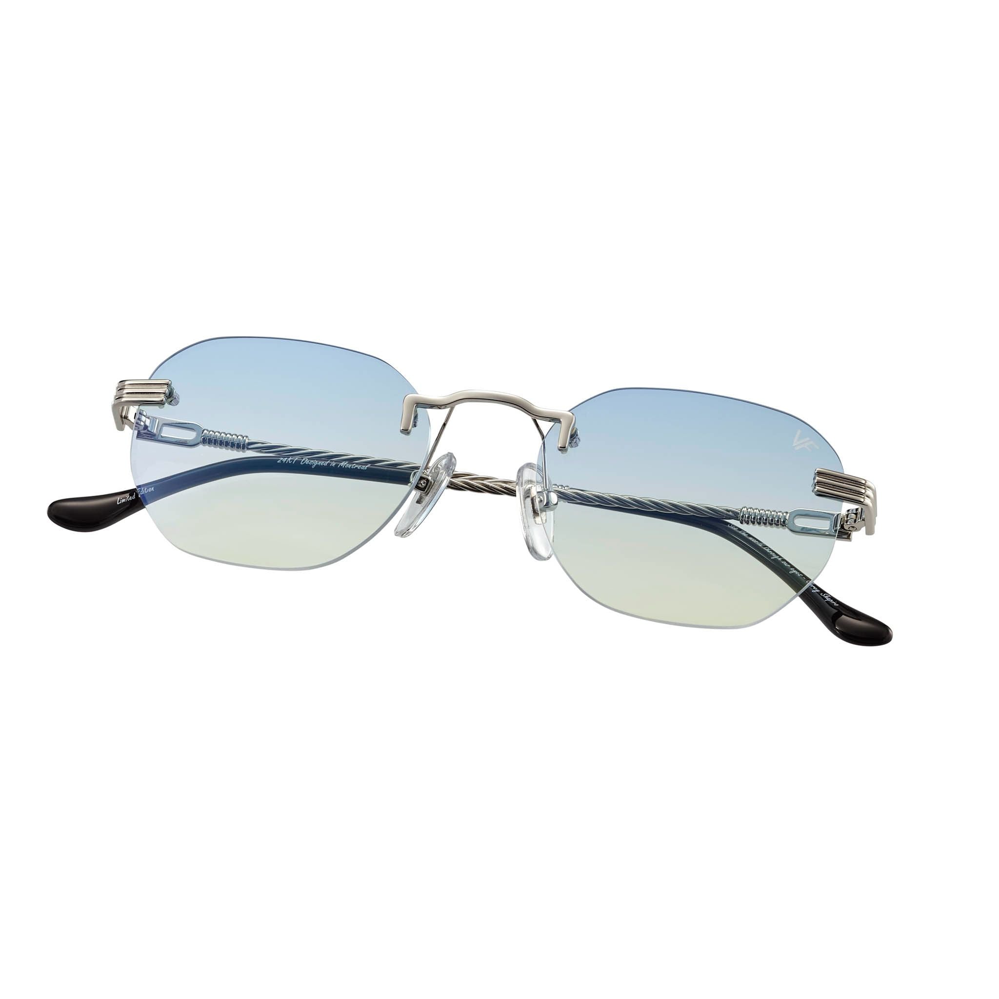 The fastest selling frame of all time is now available in a rimless style. The Detroit Player drill mount has 24kt white gold nose bridge and our classic rope detailed arms. Available in a wide array of our iconic sun lenses and is also available for prescription.