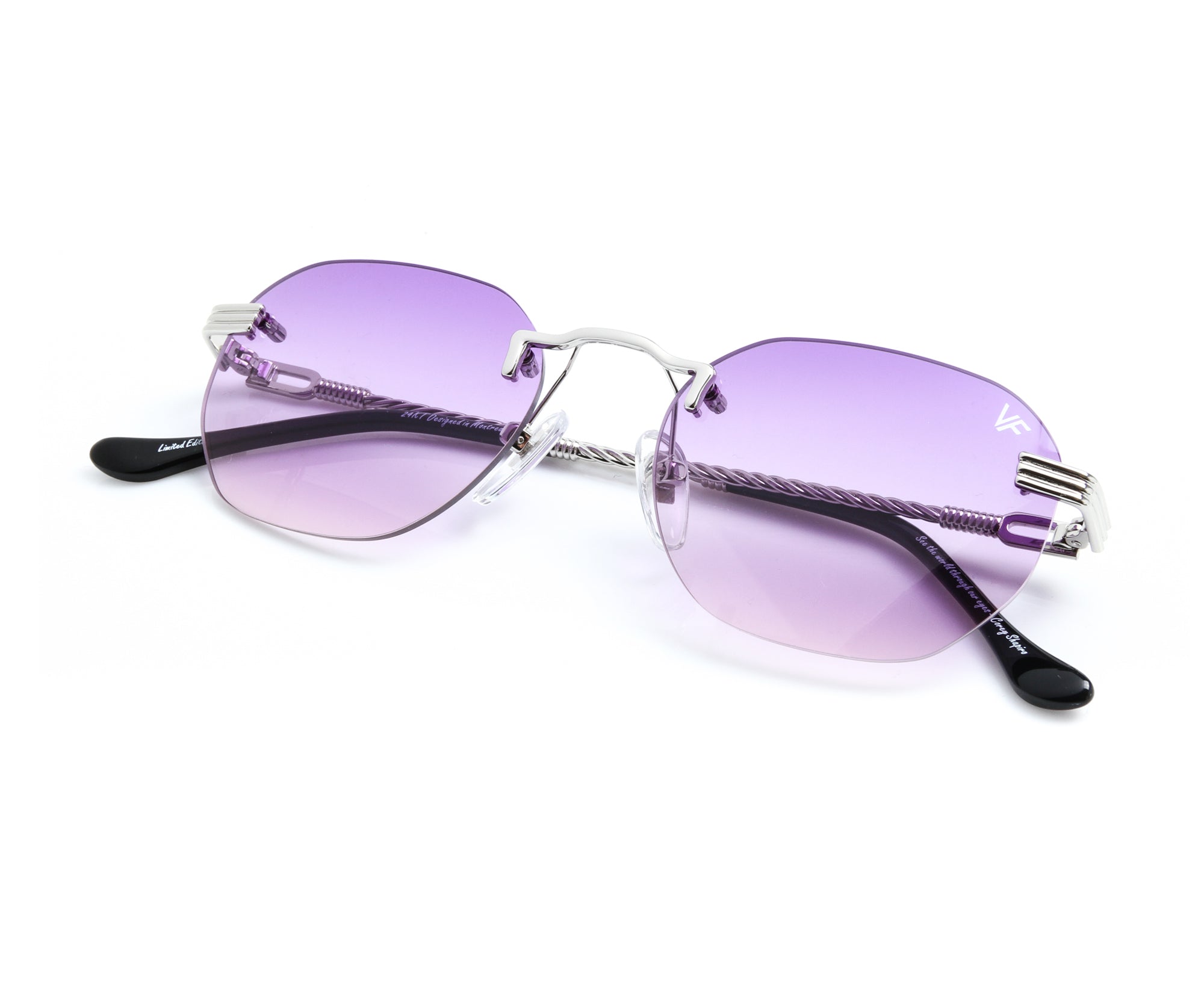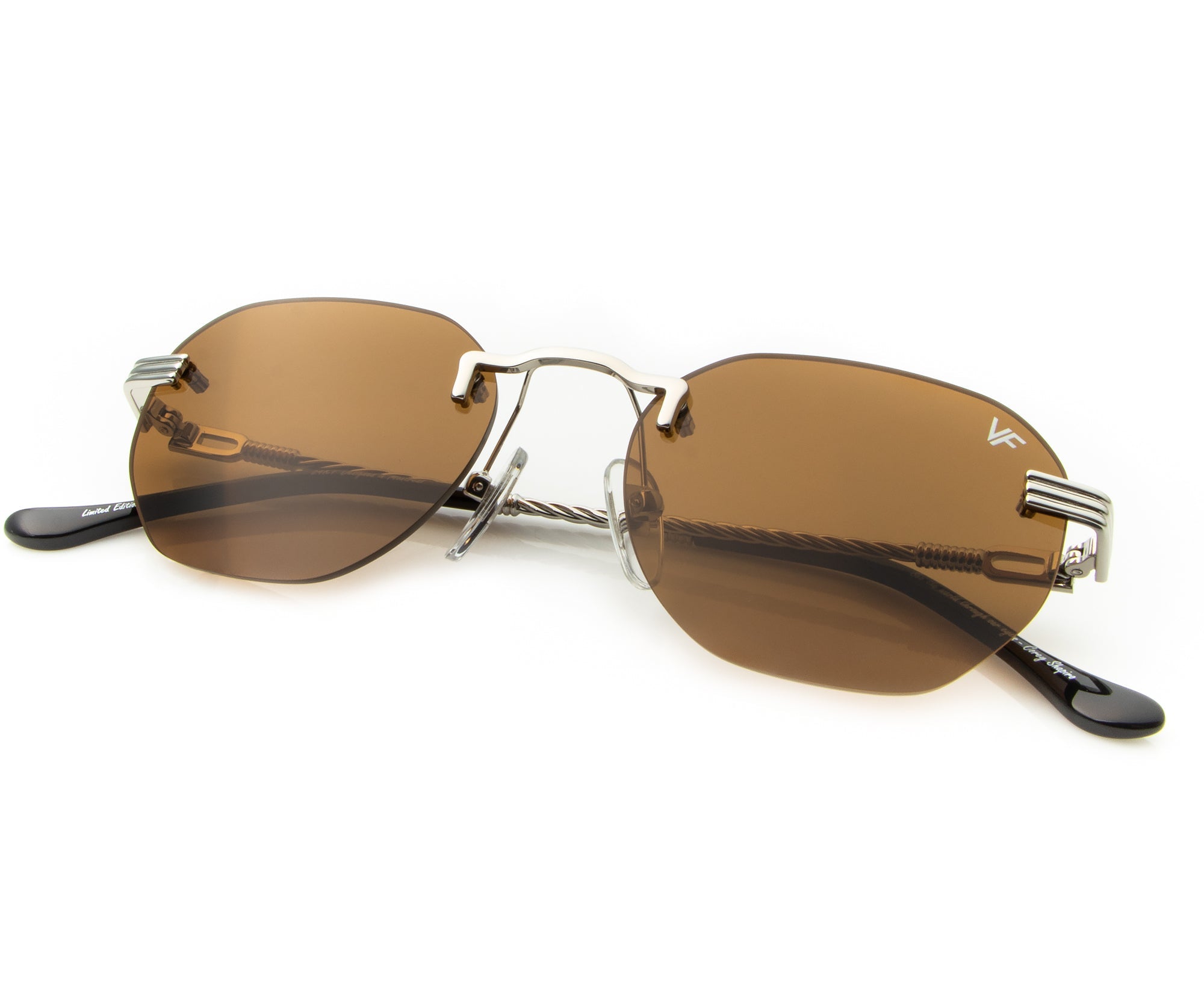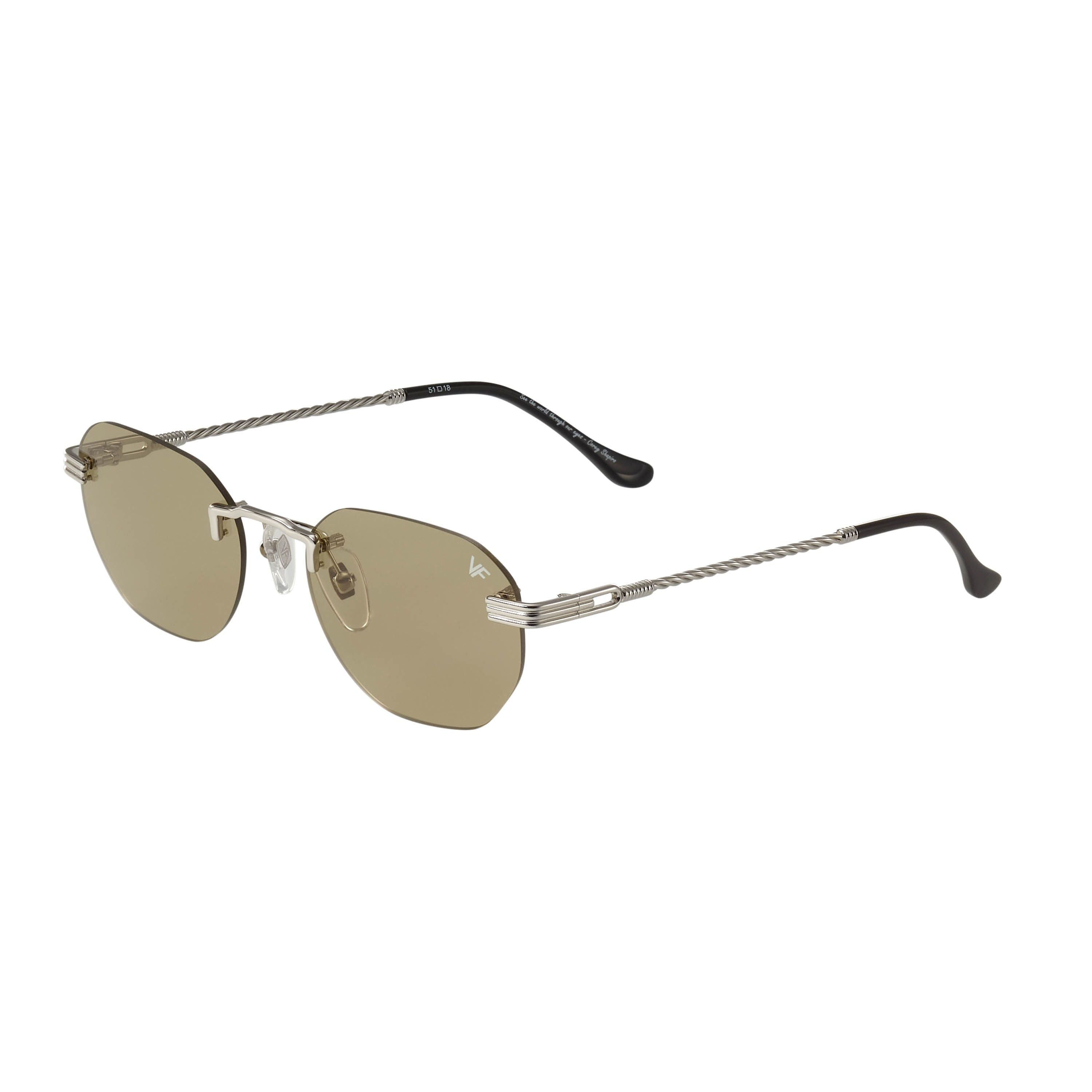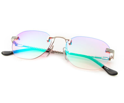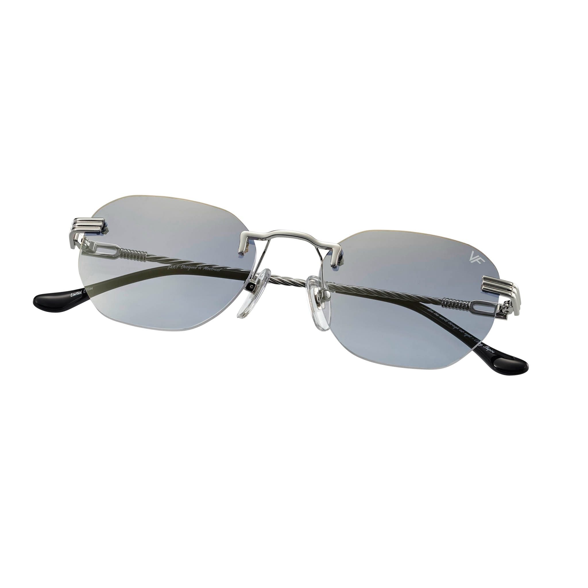 The fastest selling frame of all time is now available in a rimless style. The Detroit Player drill mount has 24kt white gold nose bridge and our classic rope detailed arms. Available in a wide array of our iconic sun lenses and is also available for prescription.
