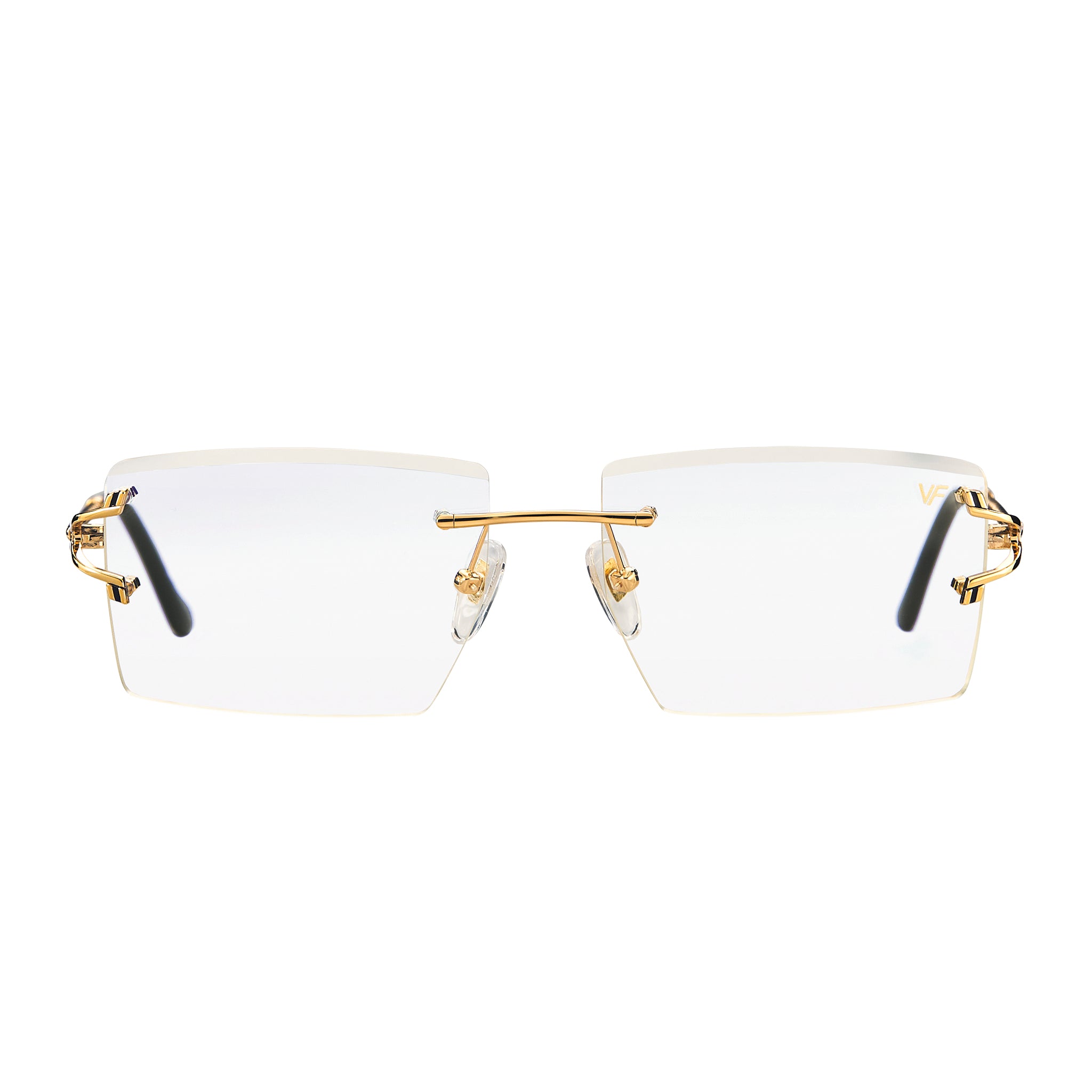 Elevate your everyday frame with our newest drill mount frame, the VF Icon. Featuring a larger design and double top beveled reinforced lenses, the VF Icon is available in both 24kt yellow and white gold finishes. Set in our classic V-Decor frame, it also includes longer posts for optical prescriptions, ensuring both effortless style and functionality.